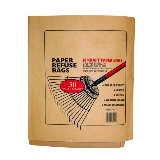 10 count, 30 gallon paper lawn & leaf bags are 100% biodegradable kraftpaper. 2 ply with a 50 lb wet strength. For grass clippings, leaves, weeds & other yard waste. Bag will degrade at various speeds based on environmental conditions when disposed. 12" x 16" x 36",